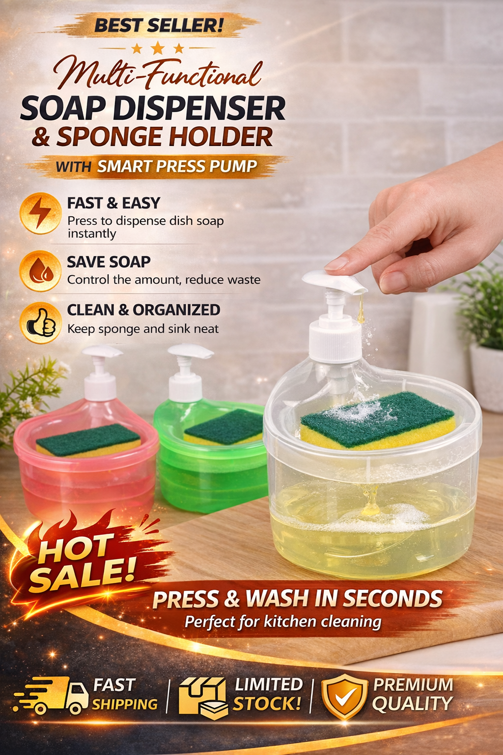 2 in 1 dishwashing liquid dispenser
